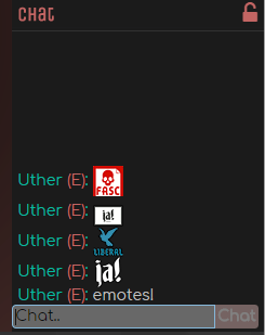 In twitch.tv style, players can chat small word fragments which will turn into icons inside of chat, such as: