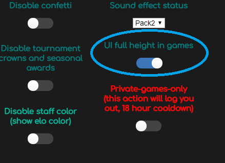Creating a public elo game now defaults to only verified accounts being able to sit in the game (if the game creator is verified). Verified accounts are those who have successfully confirmed their non disposable email address, or are using sign in with Github or Discord. This will solve various moderation problems. If everyone hates this, I will consider reverting this change. Please read our email terms of use (cliffs: will never email you other than initial verification and password resets, your email will never leave the site). -coz